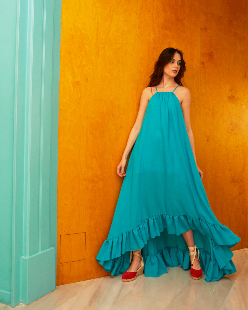 Nicole viscose wide turquoise dress