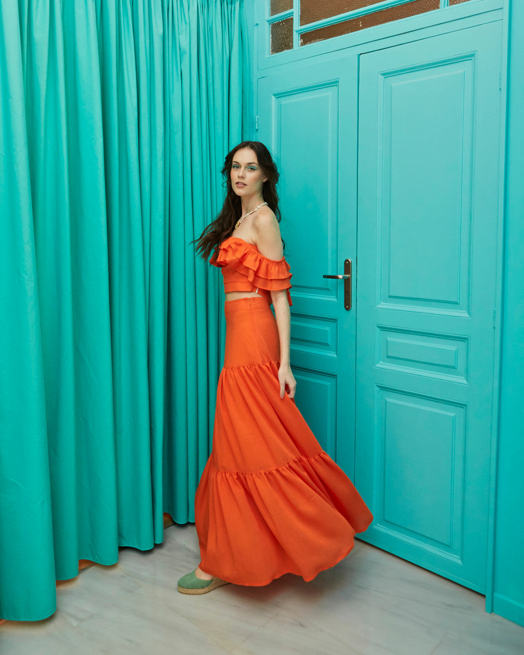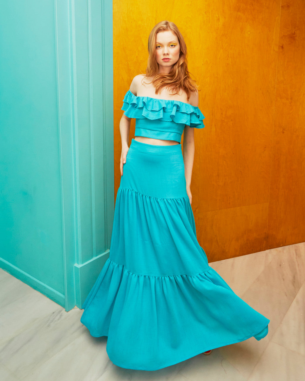 Nicole wide turquoise skirt