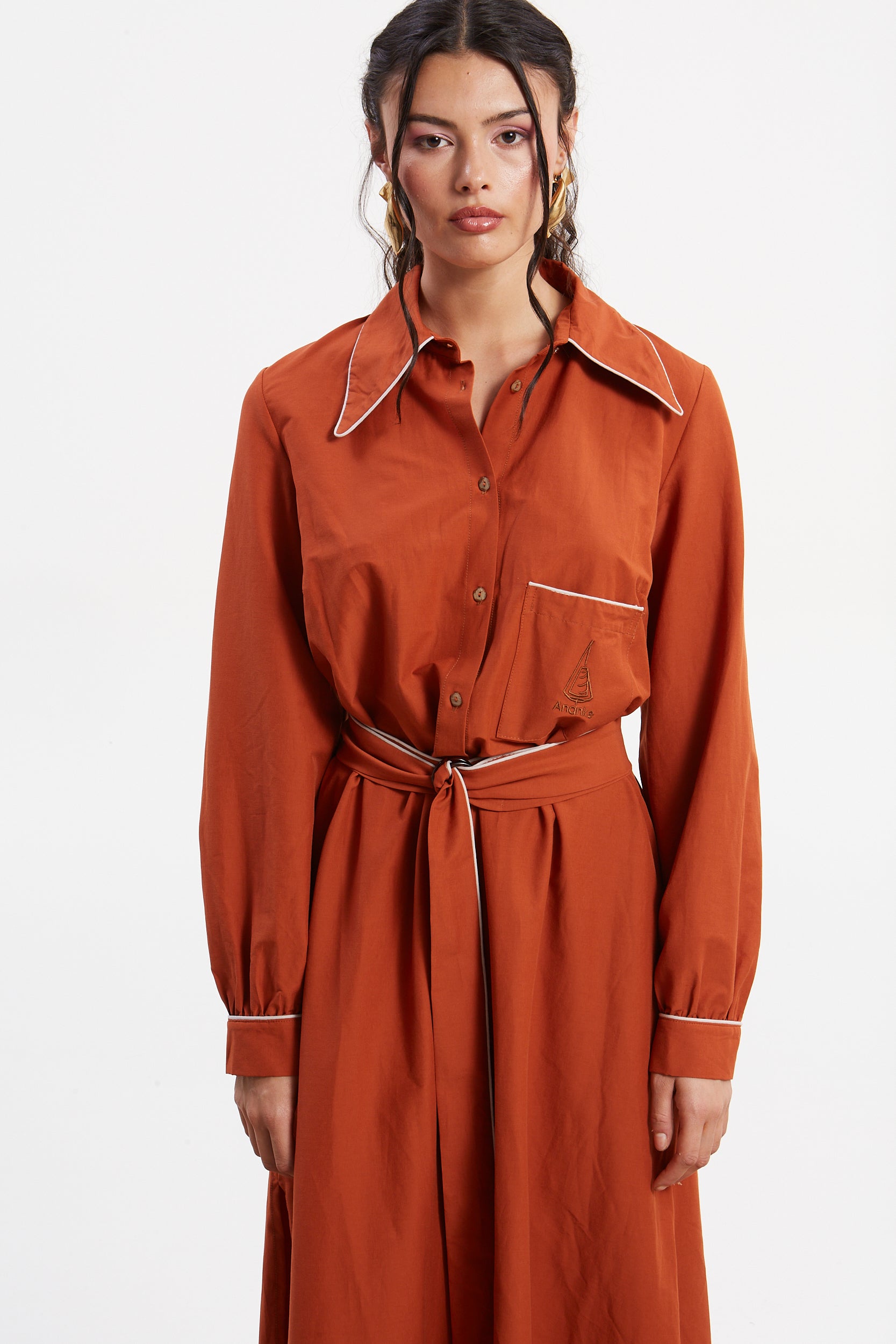Ellen poplin rust shirtdress