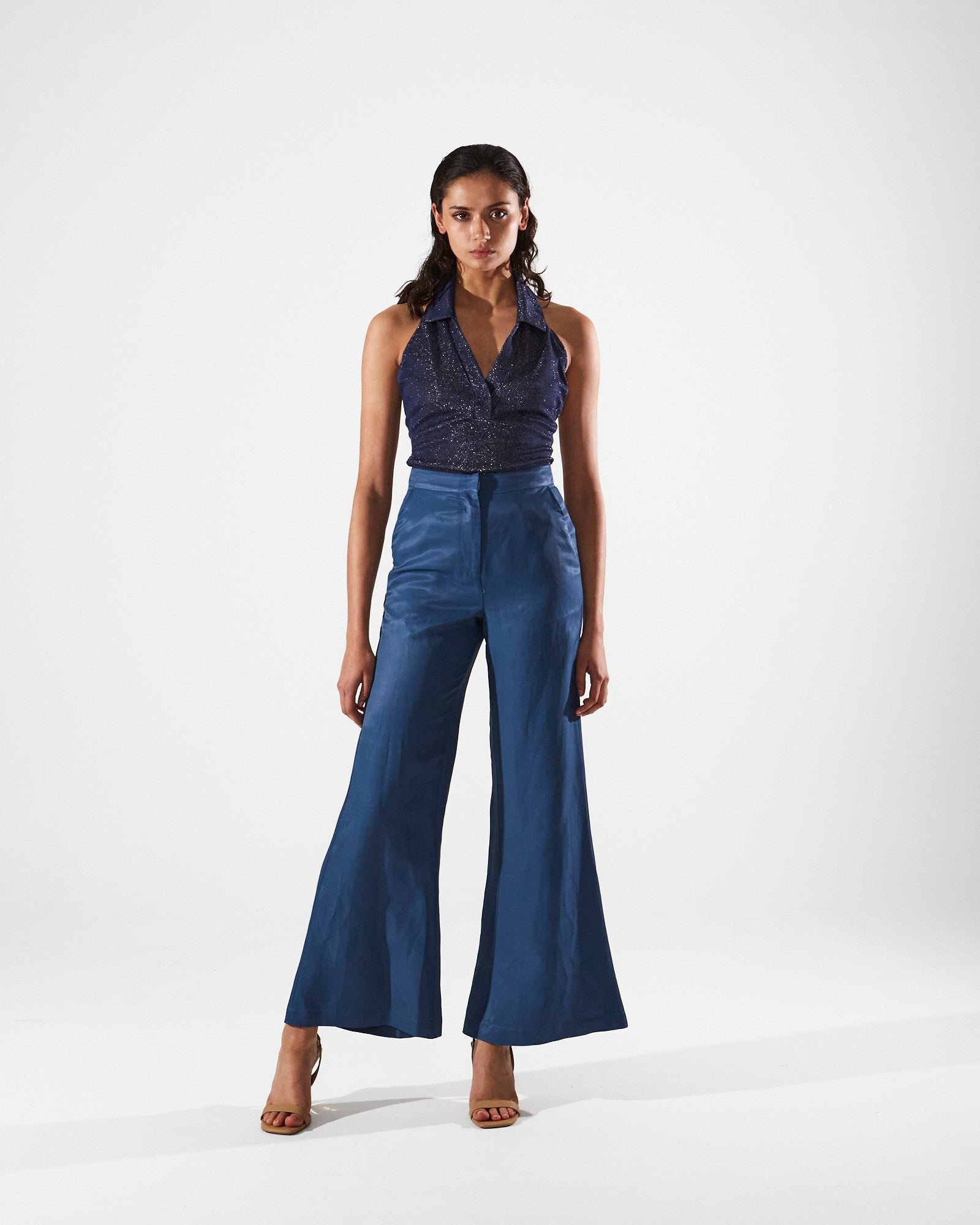 Dione collar navy blue top