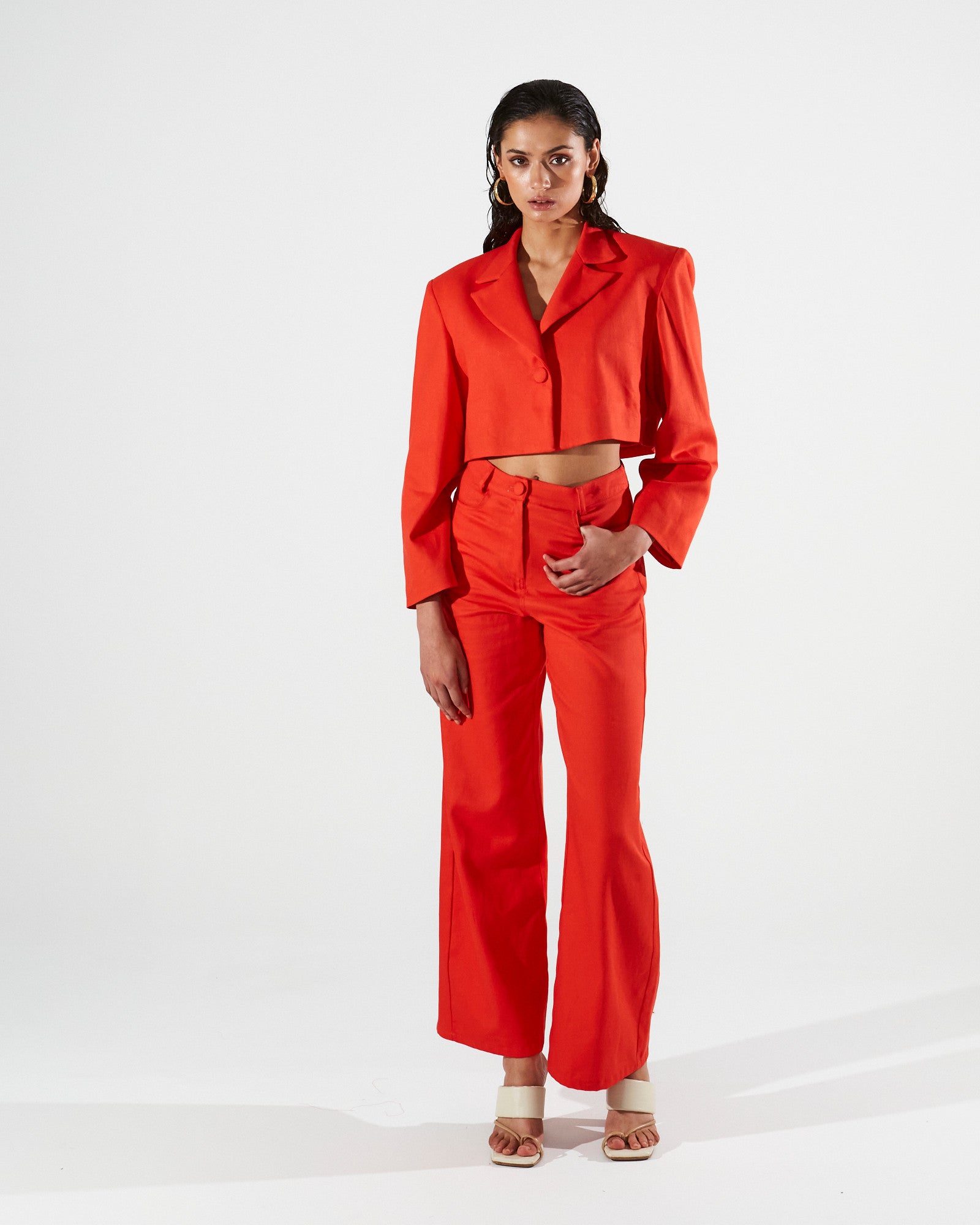 Clio cotton cropped red blazer
