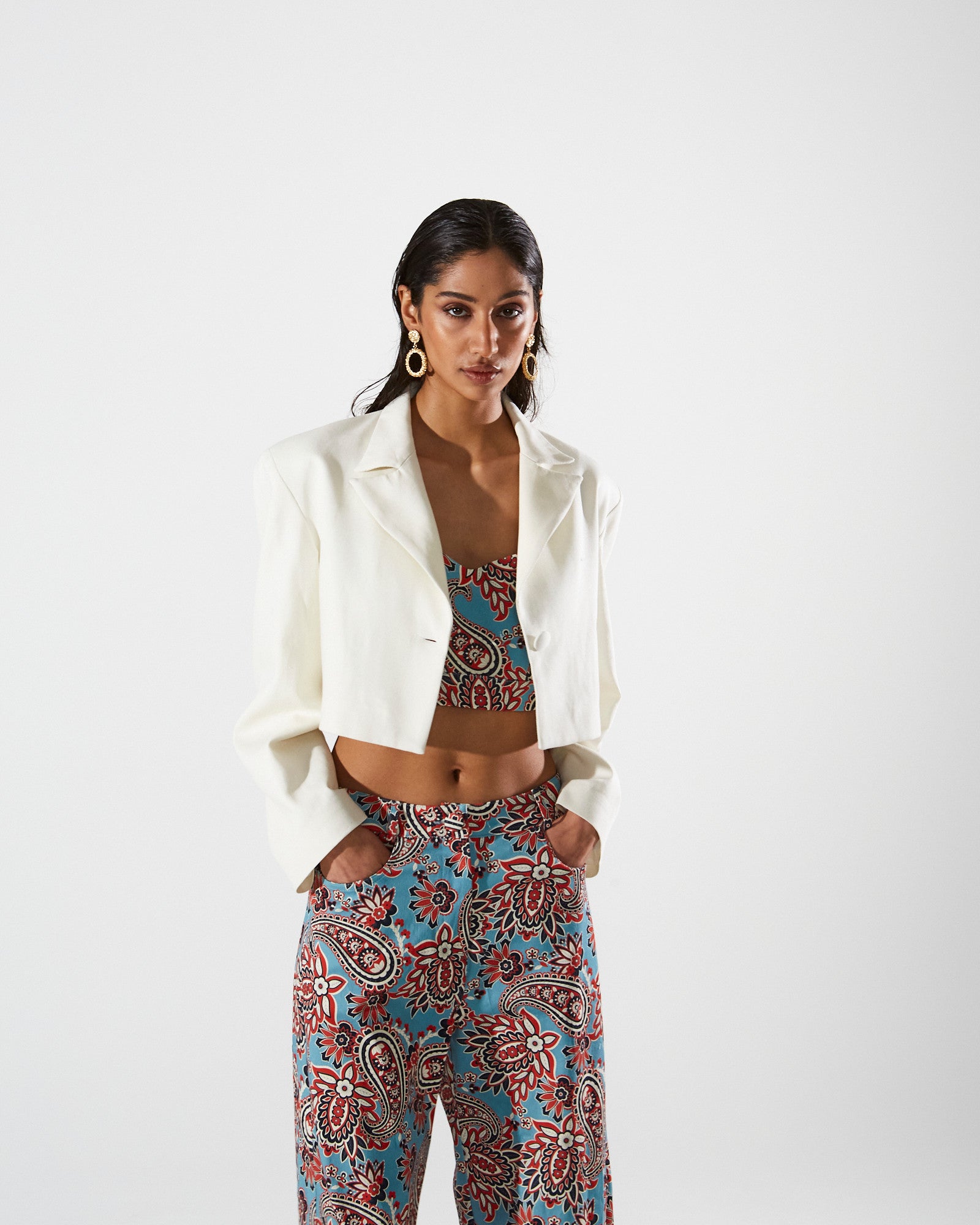 Clio cotton cropped ecru blazer