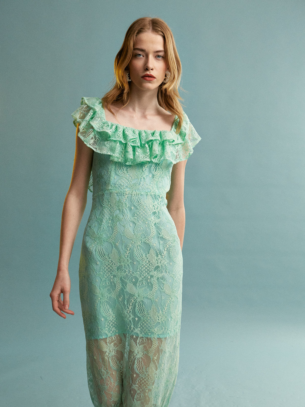 Sebille ruffle lace mint dress