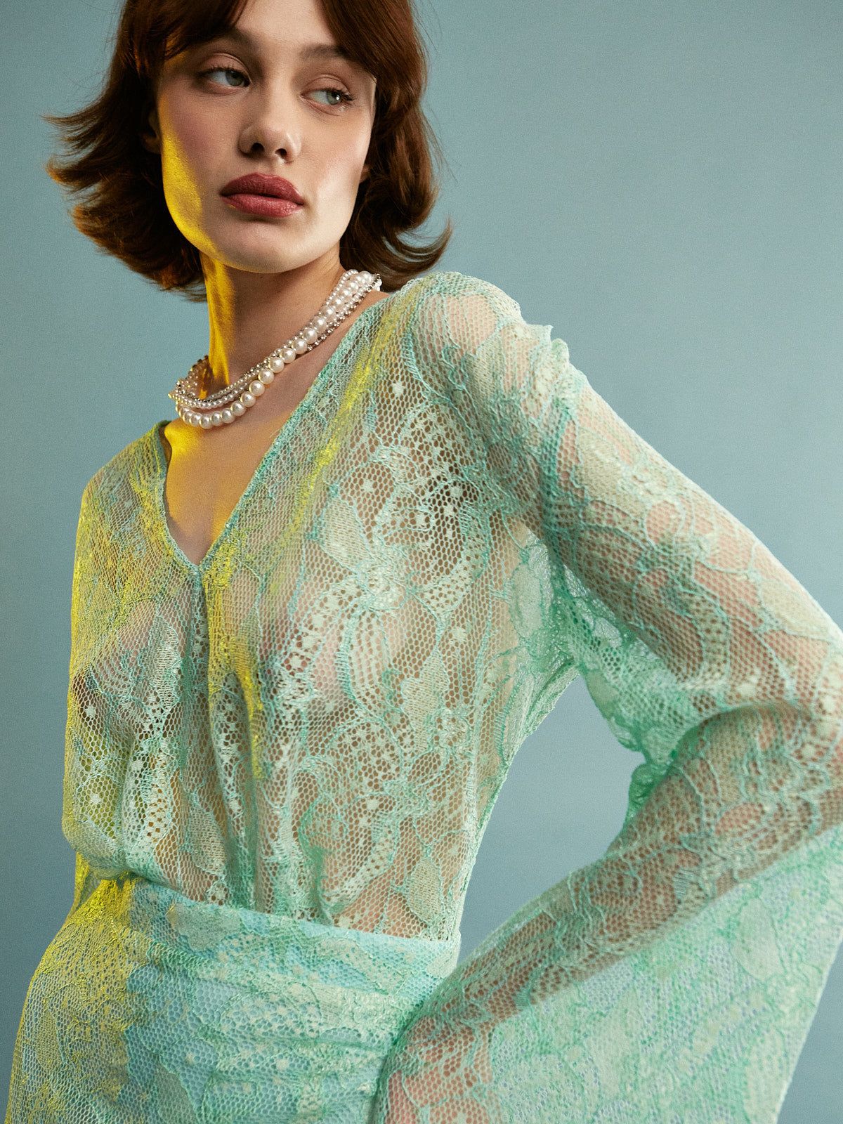 Sebille lace mini mint dress