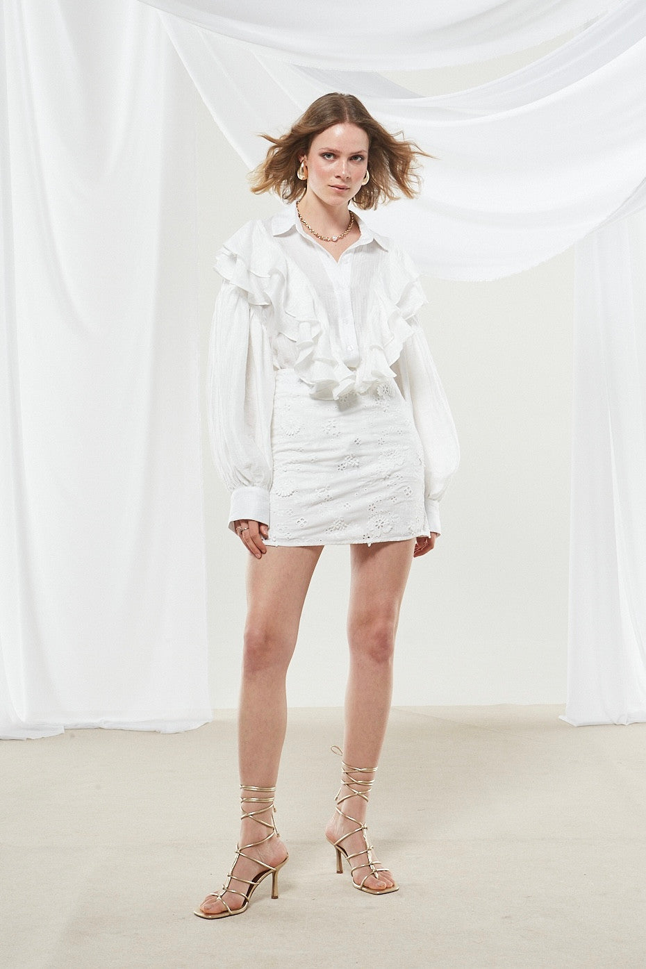 Aster broderie mini white skirt