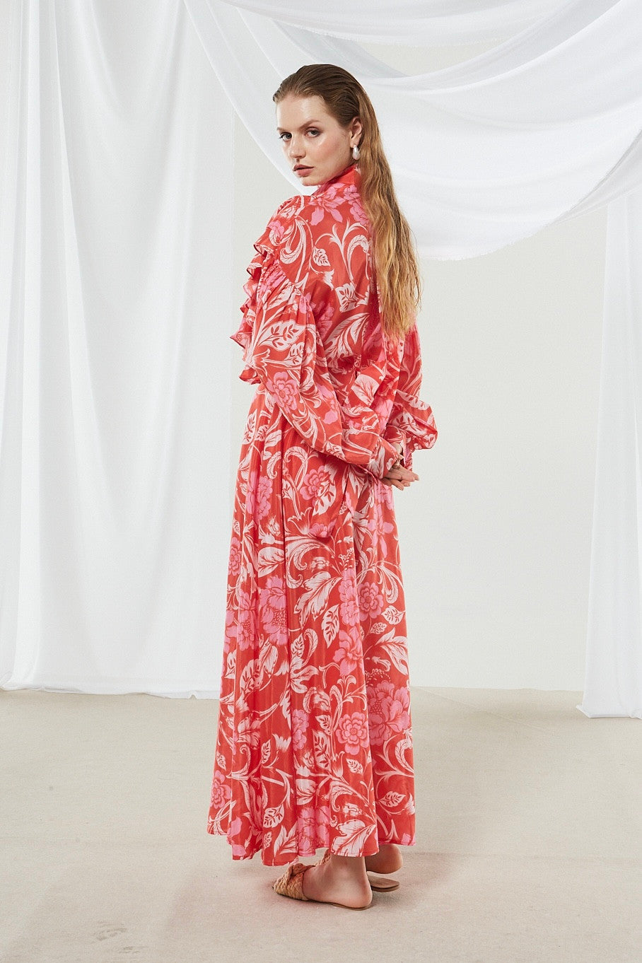 Camellia ruffle printed shirt