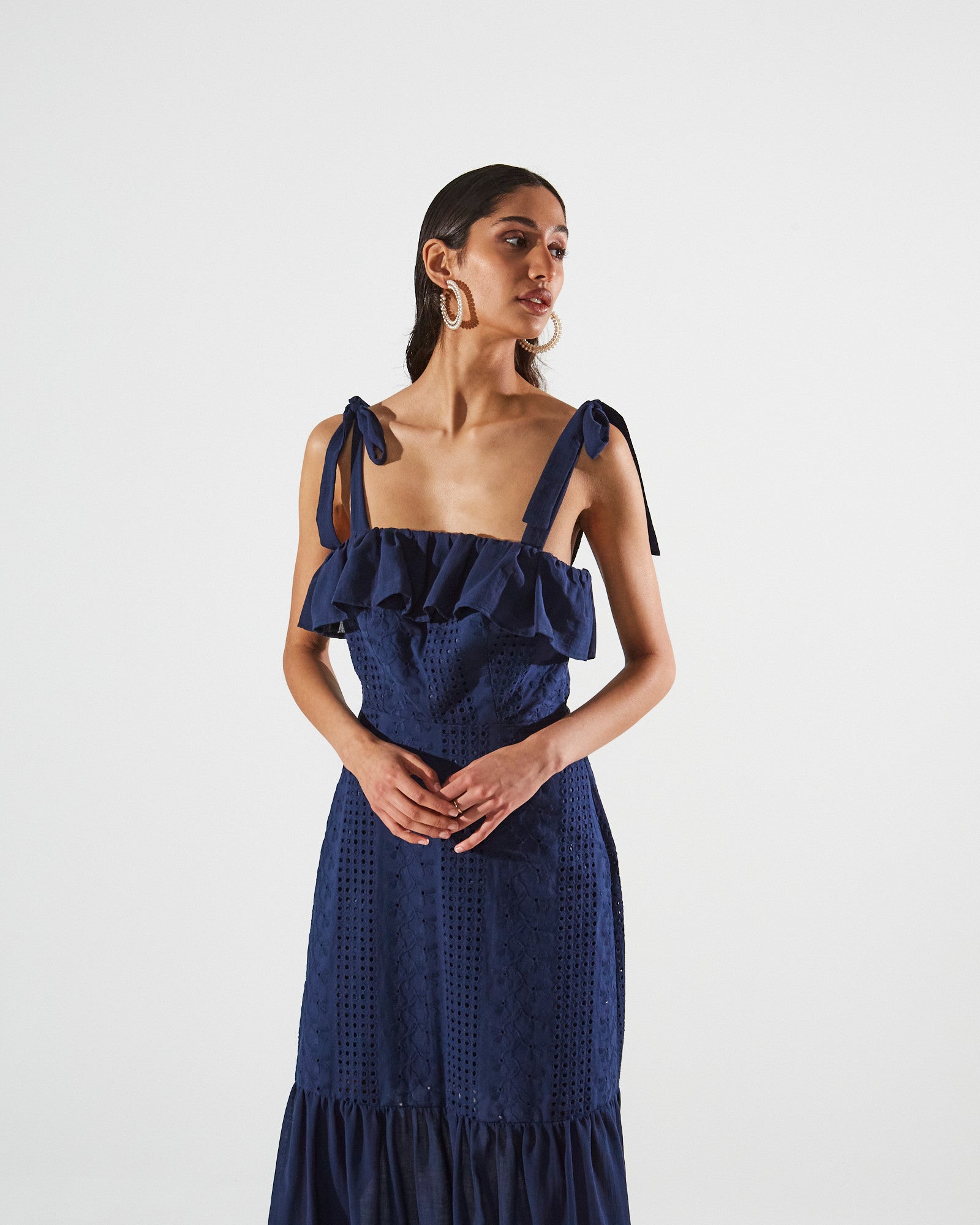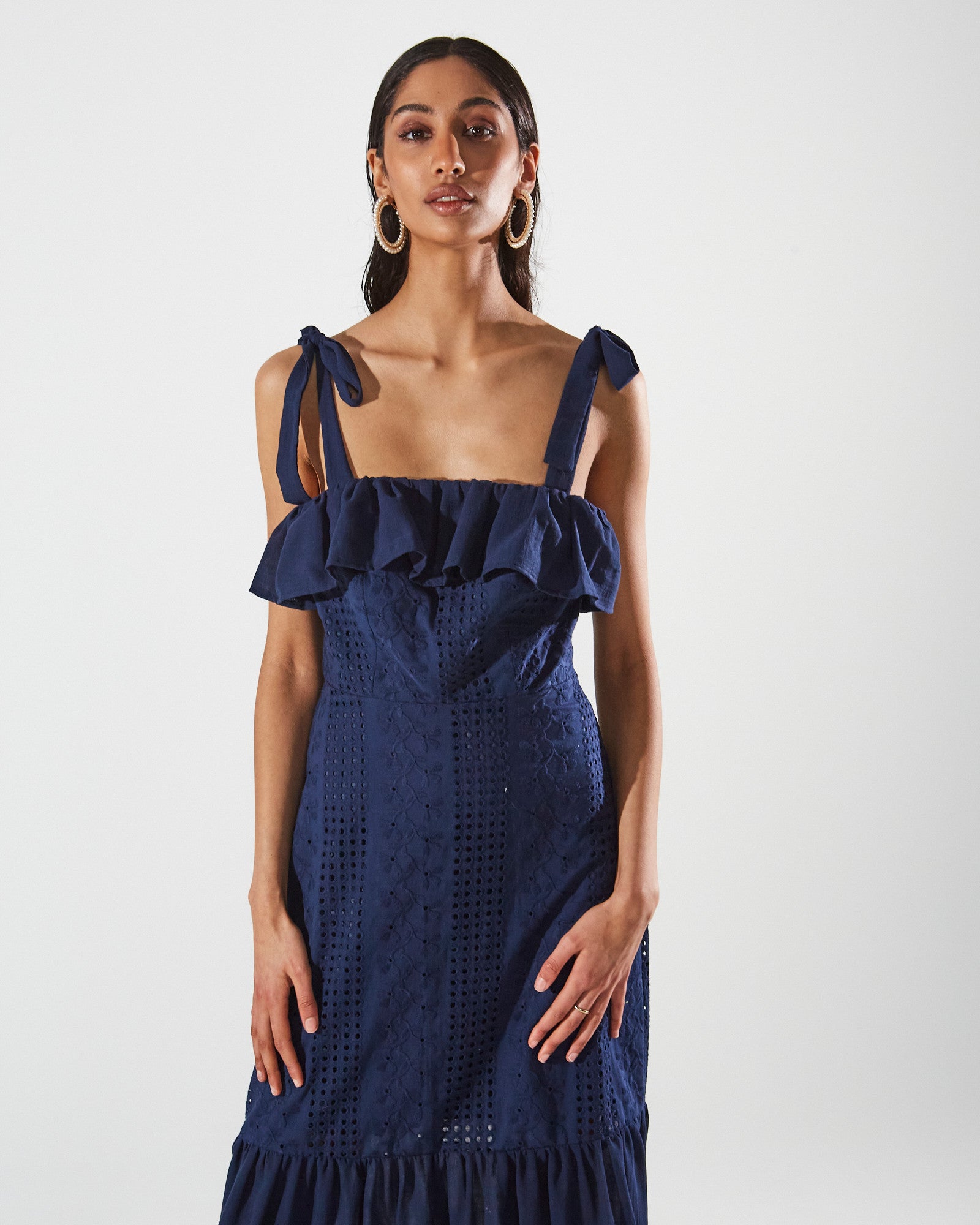 Ava cotton broderie ruffle blue dress