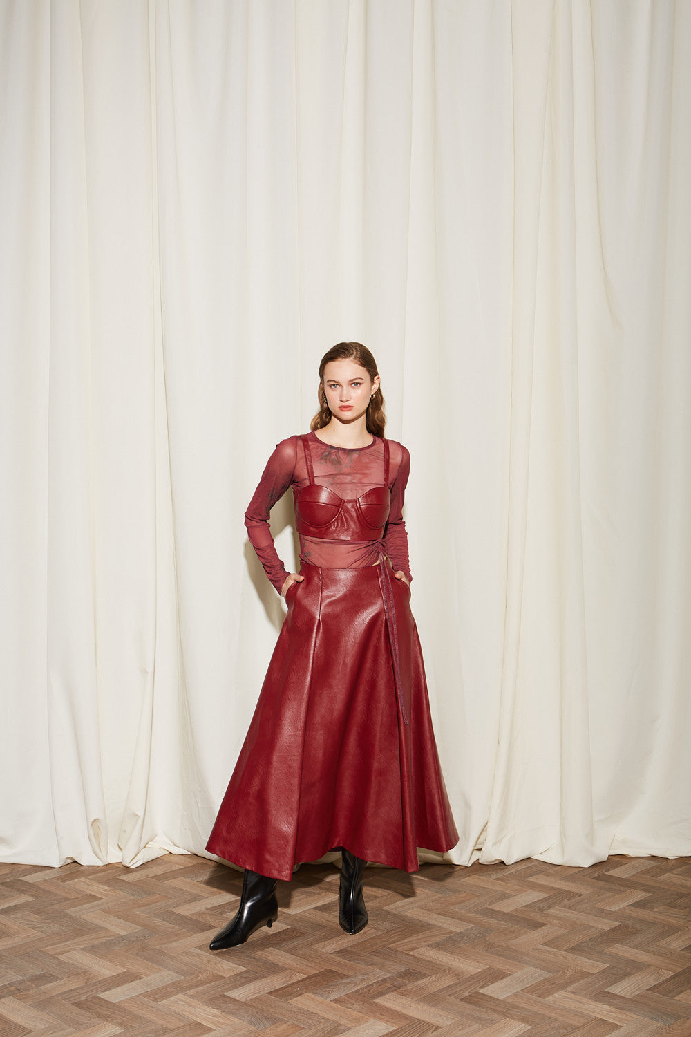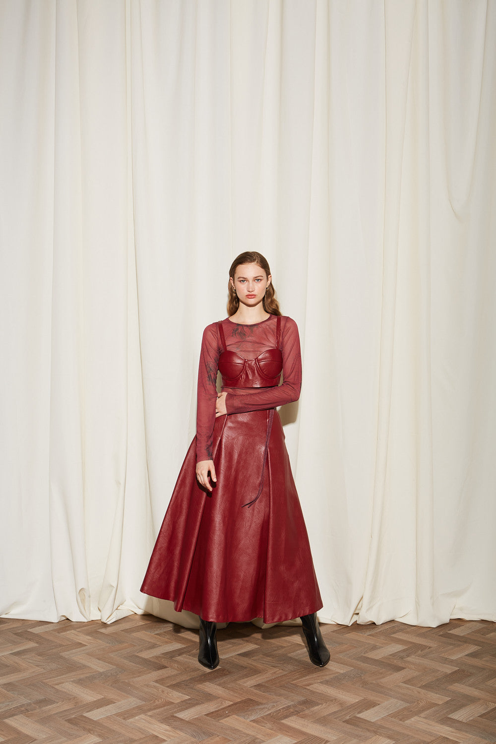 Daria eco leather burgundy crop top