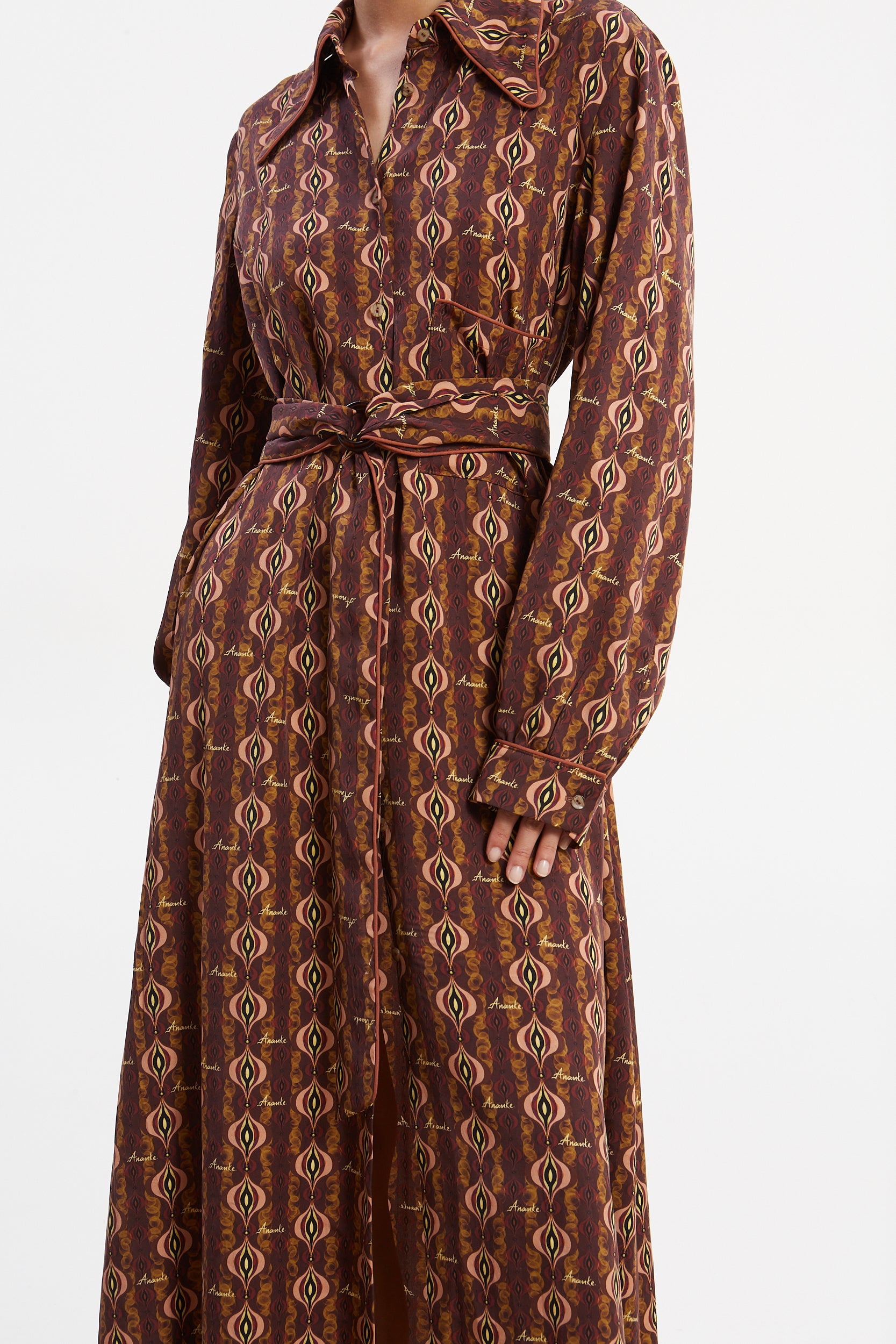• Color & Pattern: Deep brown tartan/plaid pattern with orange, teal/blue, and darker lines accents.