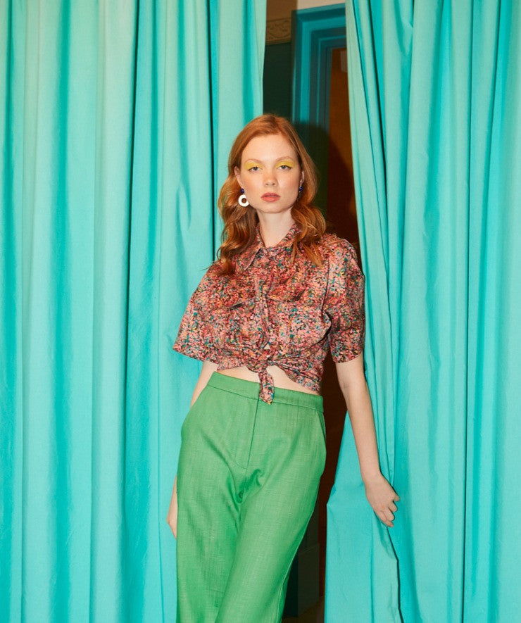 • Fabric characteristics: Made from a lightweight woven cotton/viscose blend with a smooth, matte finish and subtle sheen. It drapes well and has a slight stretch.