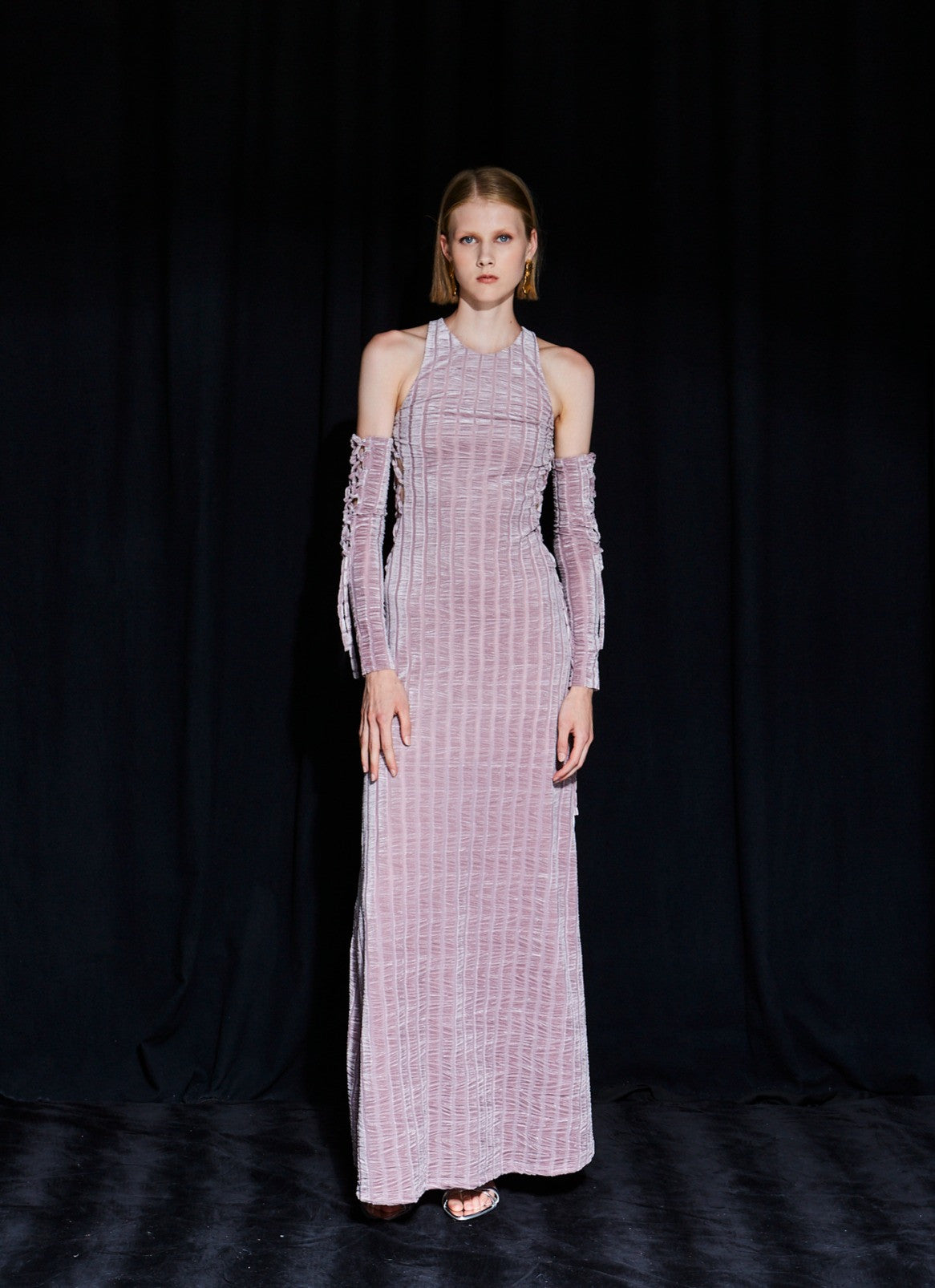 Pair this dress with a pair of black high heels and a sleek clutch for a classic and elegant look. Add some statement jewelry, such as a chunky necklace or bold earrings, to enhance the edgy vibe. For a more glamorous look, style it with a fur stole or a sequined shawl.