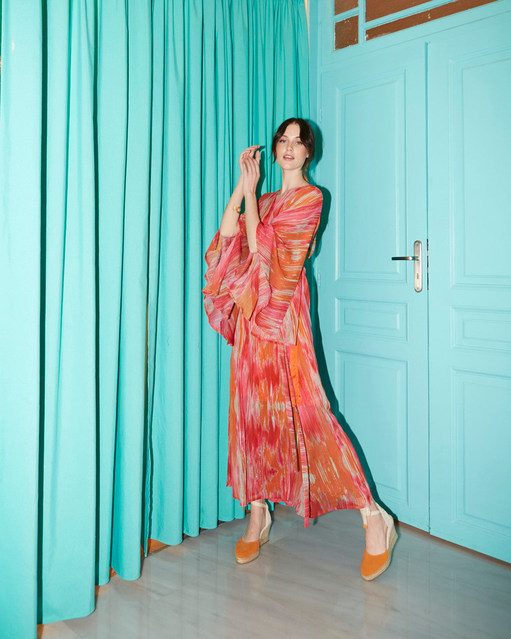 - Fabric characteristics: Lightweight, flowing chiffon or silk – blend with a smooth texture and subtle sheen.