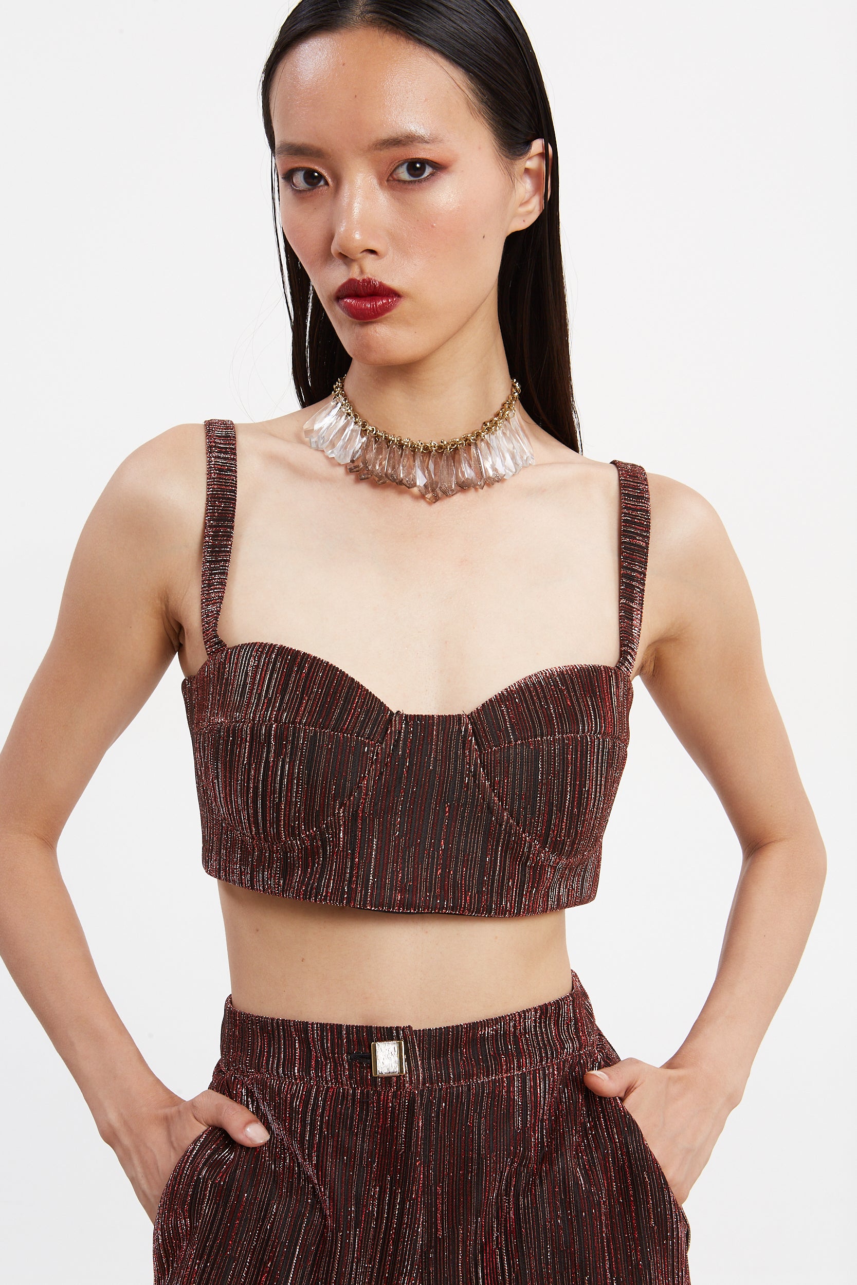 Gloria lurex red bustier top