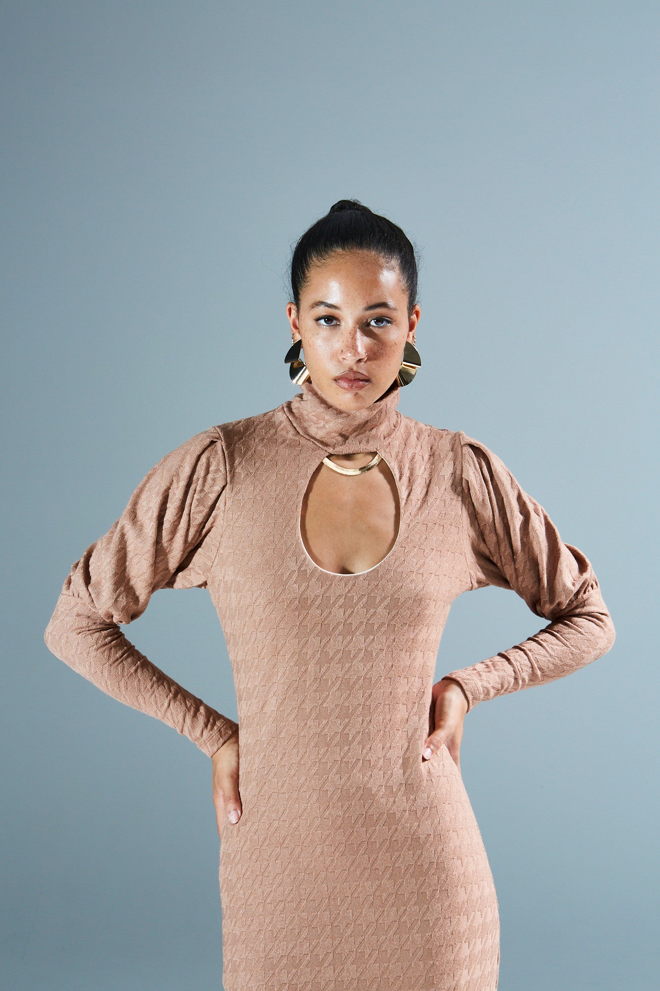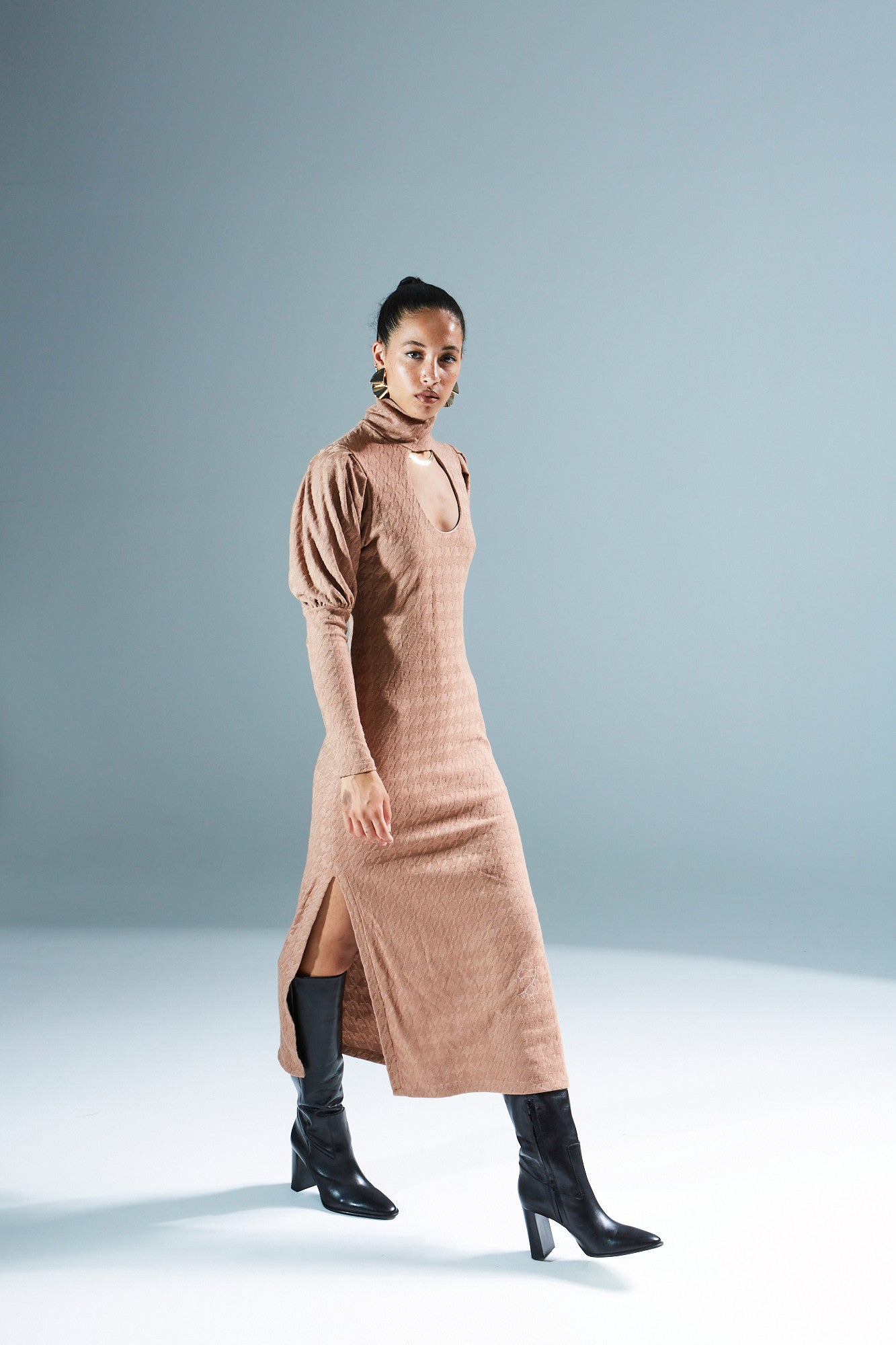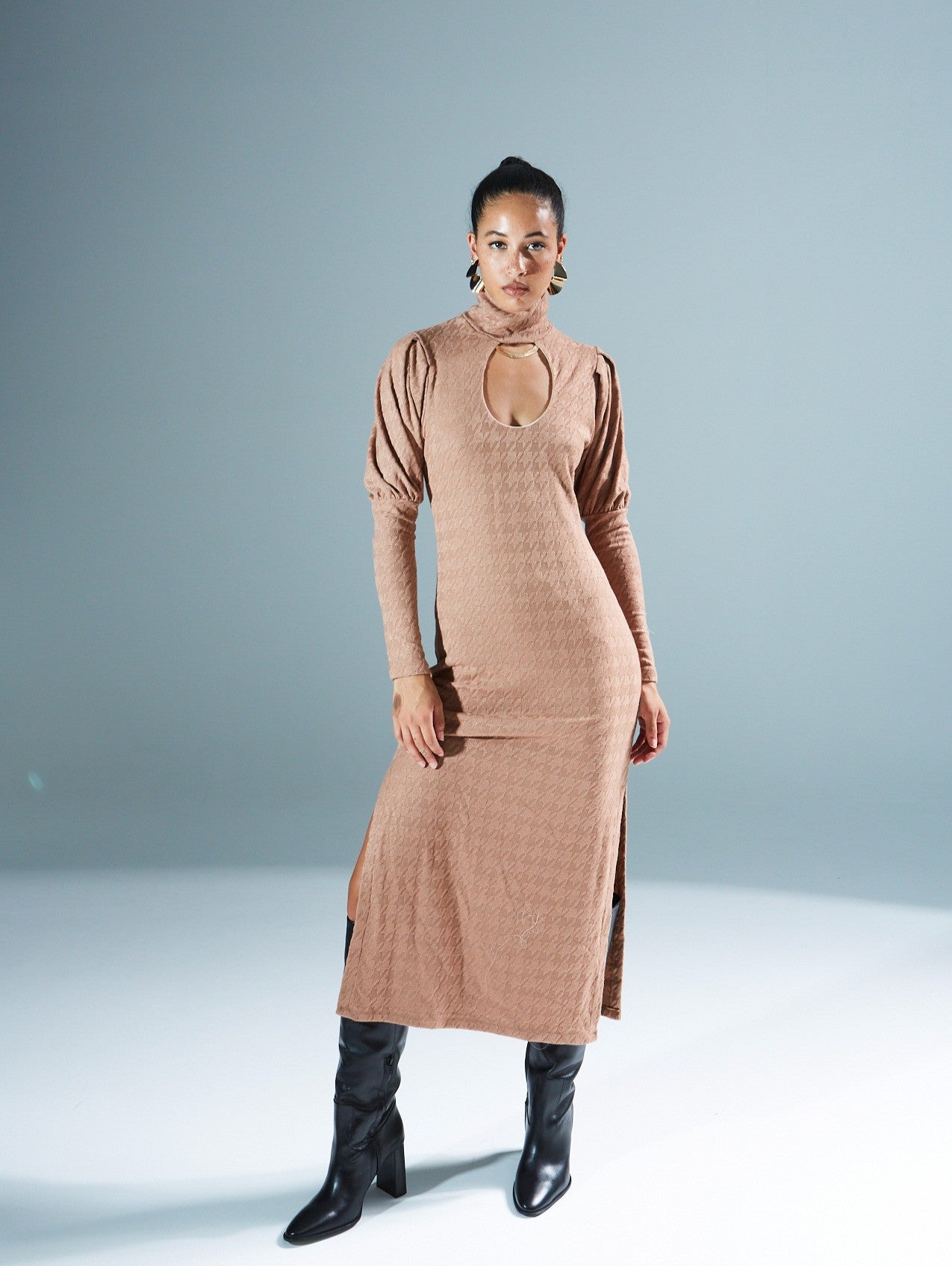 Kassandra turtleneck knitted camel dress