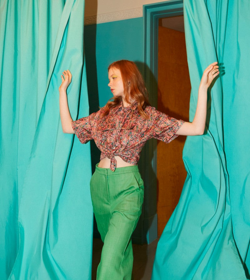 - Fabric characteristics: Made from a medium – weight woven fabric, likely a silk/cotton blend. It has a smooth texture with a slight matte finish, is structured, and slightly crisp.
