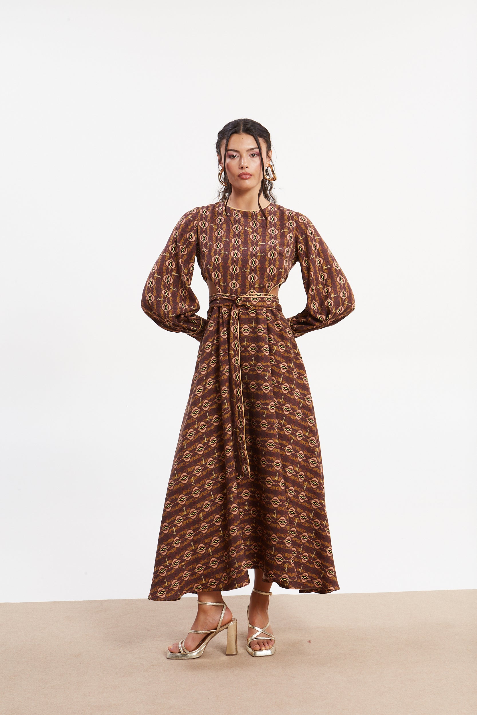 - Fit type: Fitted through the bust and waist, with a flared A-line skirt from the midriff down.