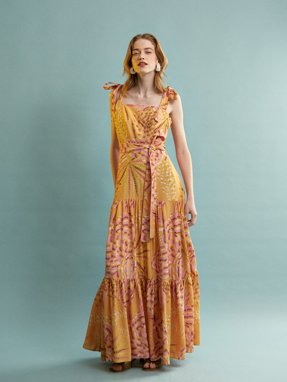 Pair it with strappy sandals for a summer party look. Add a statement belt to further accentuate the waist. For an editorial look, style it with chunky heeled boots and a leather jacket.