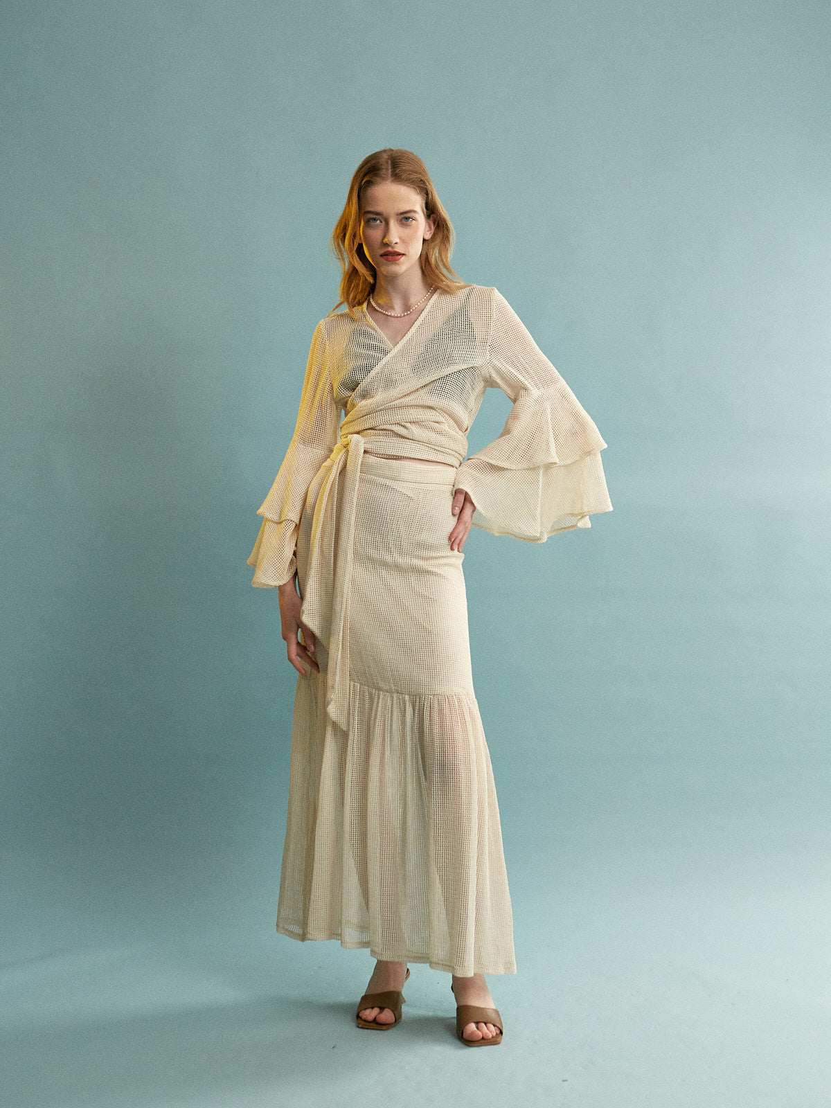 Zia cotton ruffle sleeve ecru top