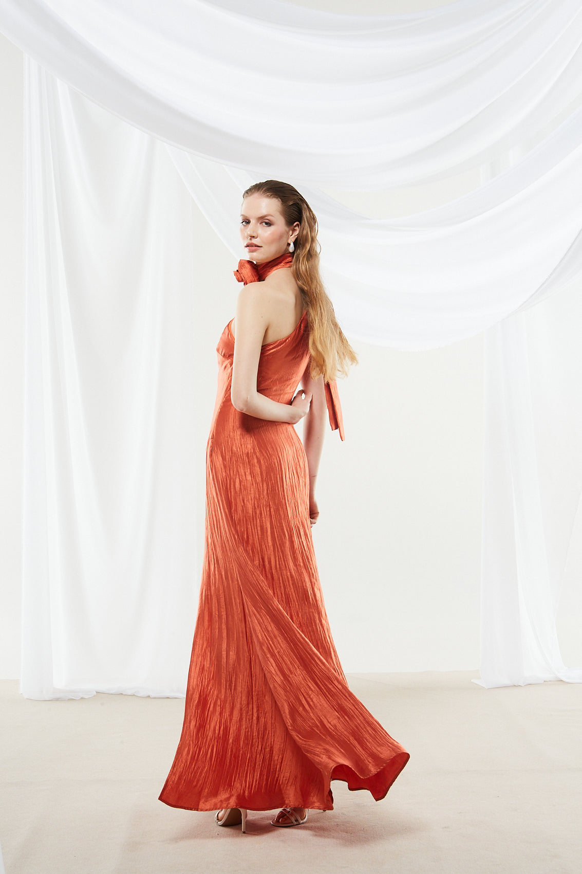 Zinnia one shoulder rust orange dress