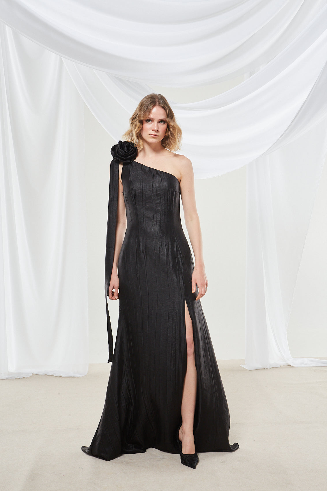Zinnia one shoulder black dress